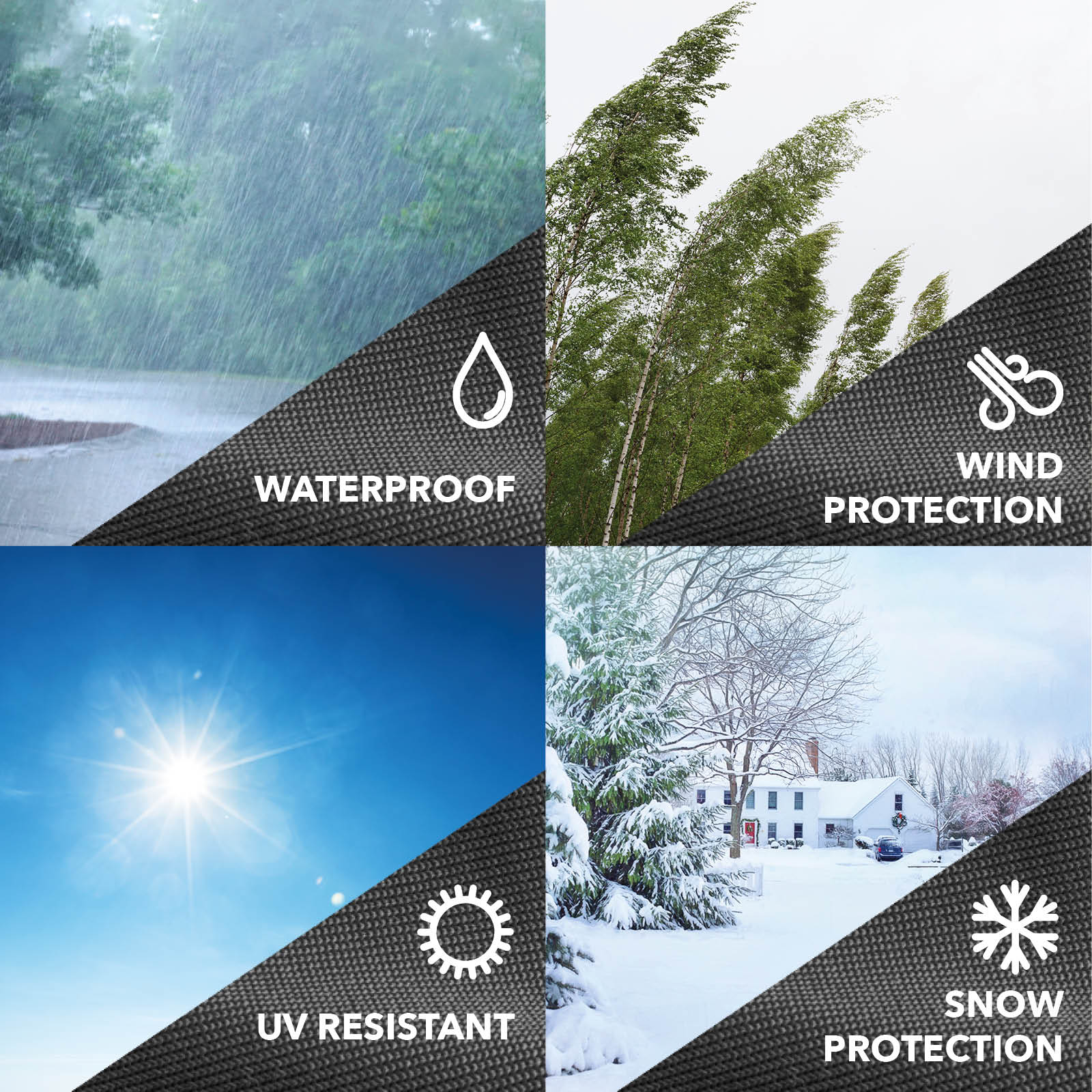 • Offering complete weather protection and featuring brass eyelets with bungee ties for secure fixing.